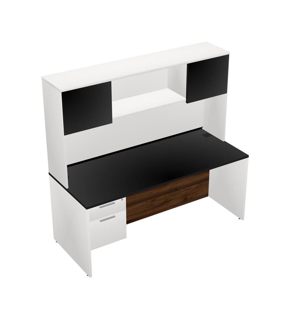 Black Rectangular Office Desk Plus White Hanging Drawers And White Hutch