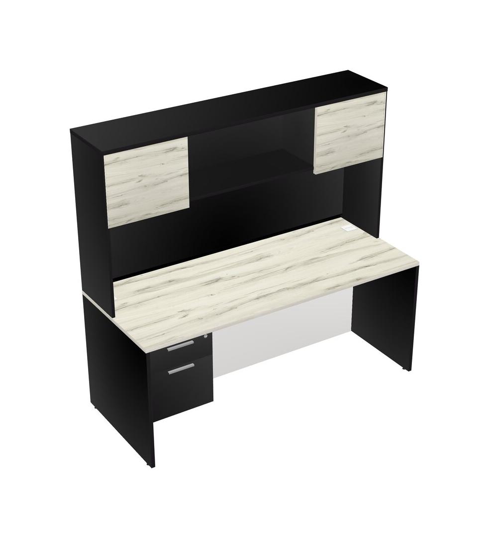 Heinne Holz Rectangular Office Desk Plus Black Hanging Drawers And Black Hutch