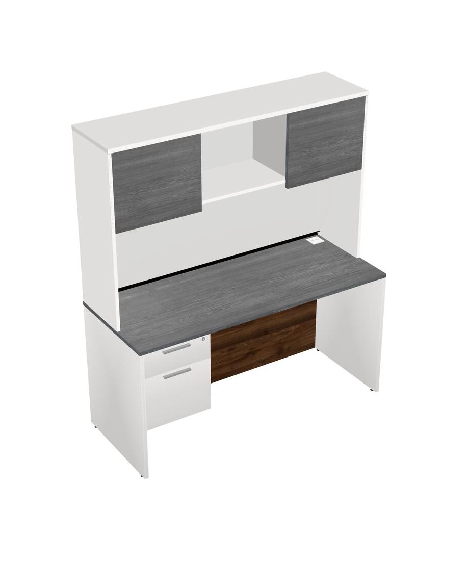 Grey Rectangular Office Desk Plus White Hanging Drawers And White Hutch