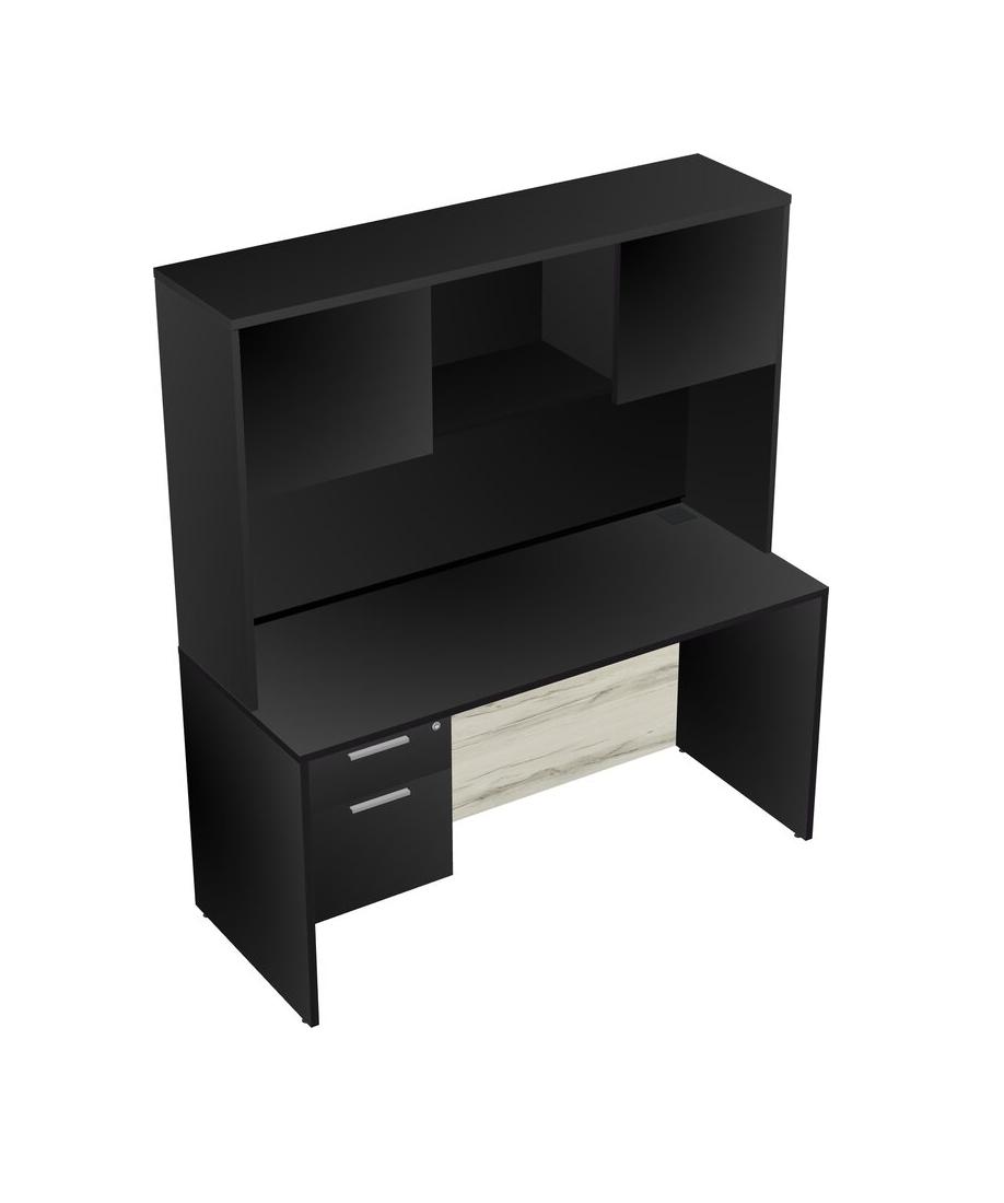 Black Rectangular Office Desk Plus Black Hanging Drawers And Black Hutch