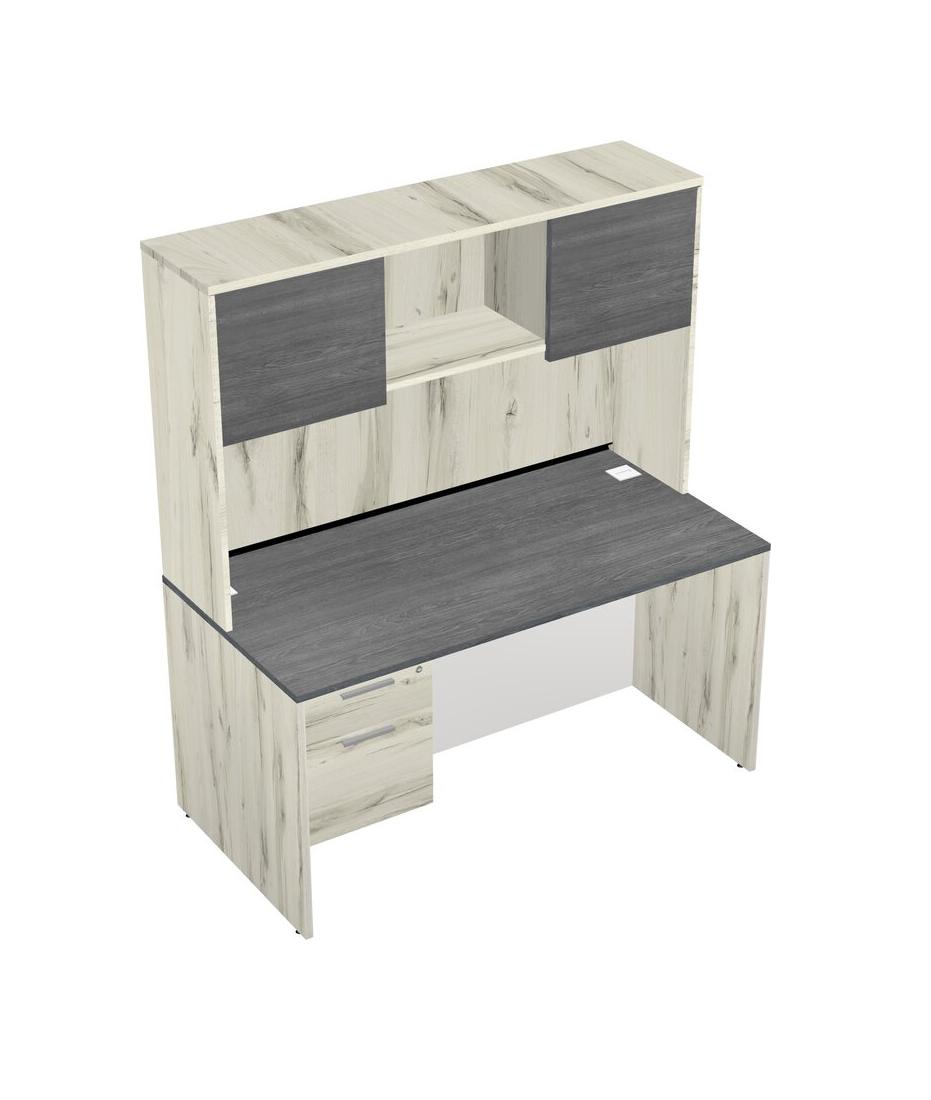 Grey Rectangular Office Desk Plus Heinne Holz Hanging Drawers And Heinne Holz Hutch