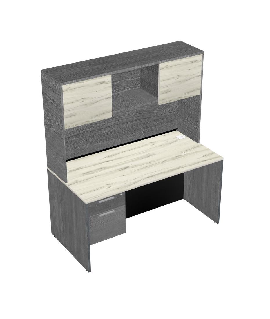 Heinne Holz Rectangular Office Desk Plus Grey Hanging Drawers And Grey Hutch