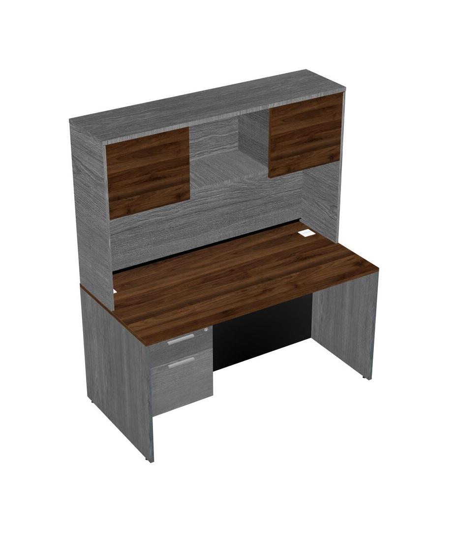 Columbia Walnut Rectangular Office Desk Plus Grey Hanging Drawers And Grey Hutch