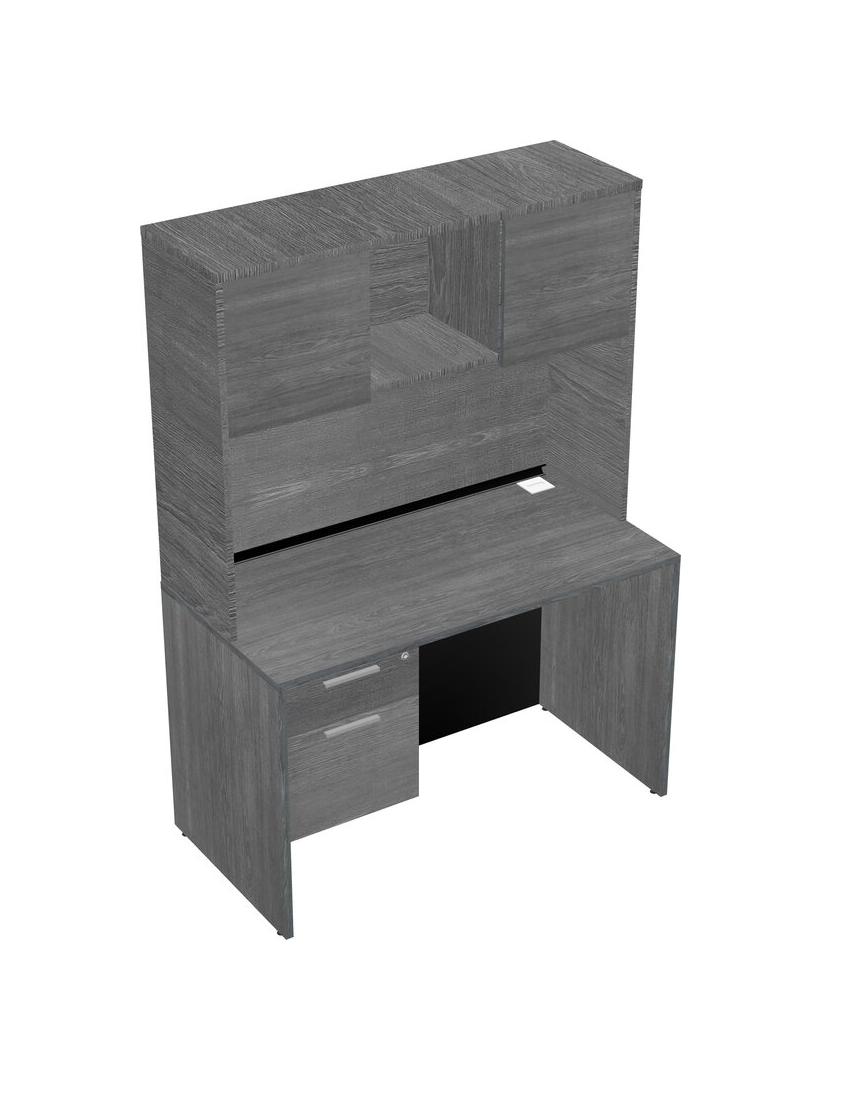 Grey Rectangular Office Desk Plus Grey Hanging Drawers And Grey Hutch