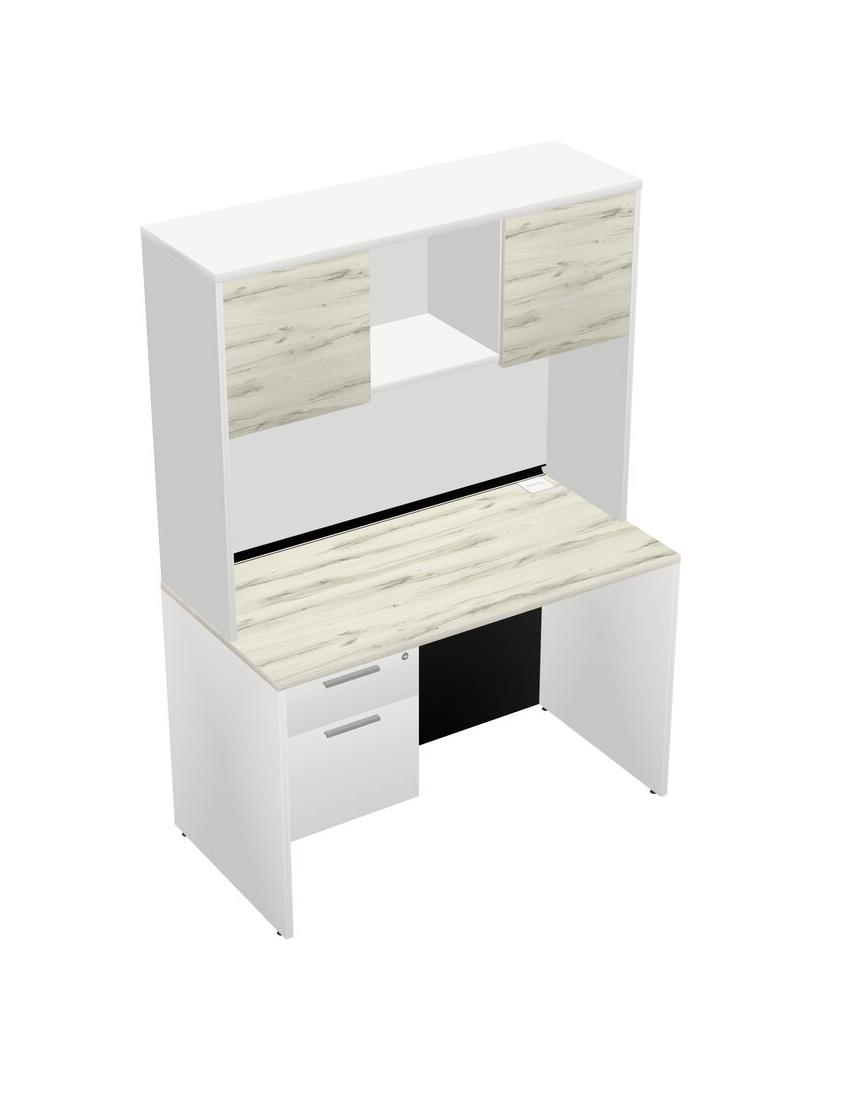Heinne Holz Rectangular Office Desk Plus White Hanging Drawers And White Hutch