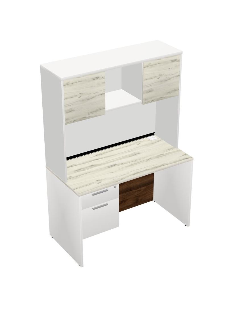 Heinne Holz Rectangular Office Desk Plus White Hanging Drawers And White Hutch