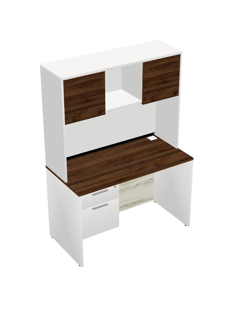 Columbia Walnut Rectangular Office Desk Plus White Hanging Drawers And White Hutch
