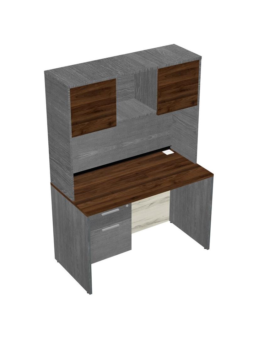 Columbia Walnut Rectangular Office Desk Plus Grey Hanging Drawers And Grey Hutch