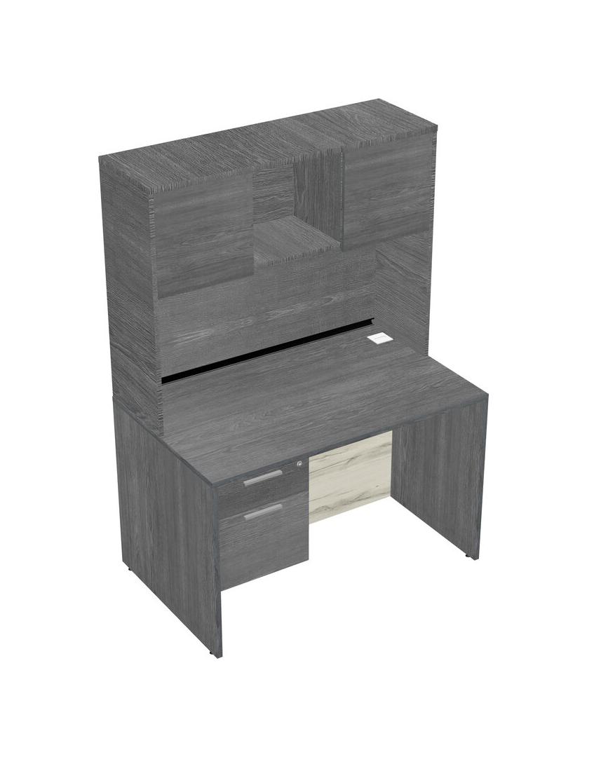 Grey Rectangular Office Desk Plus Grey Hanging Drawers And Grey Hutch