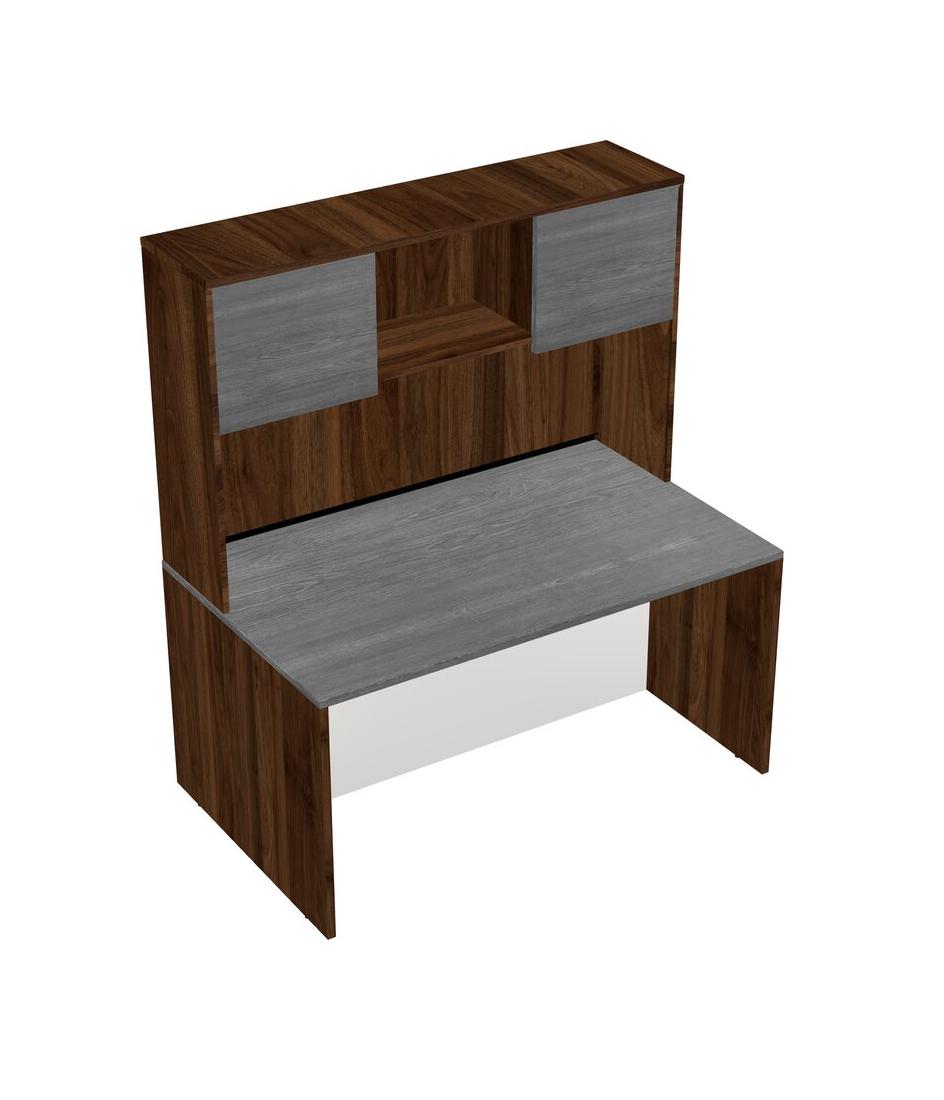 Grey Rectangular Office Desk And Columbia Walnut Hutch