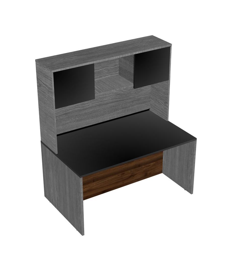 Black Rectangular Office Desk And Grey Hutch