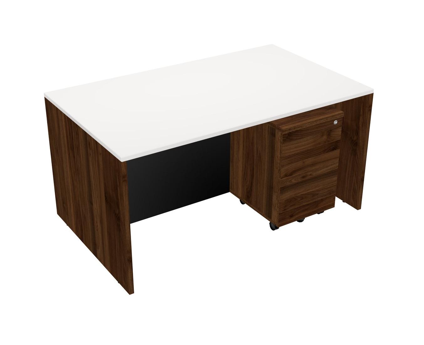 White Rectangular Office Desk Plus Columbia Walnut Wooden Mobile Drawers