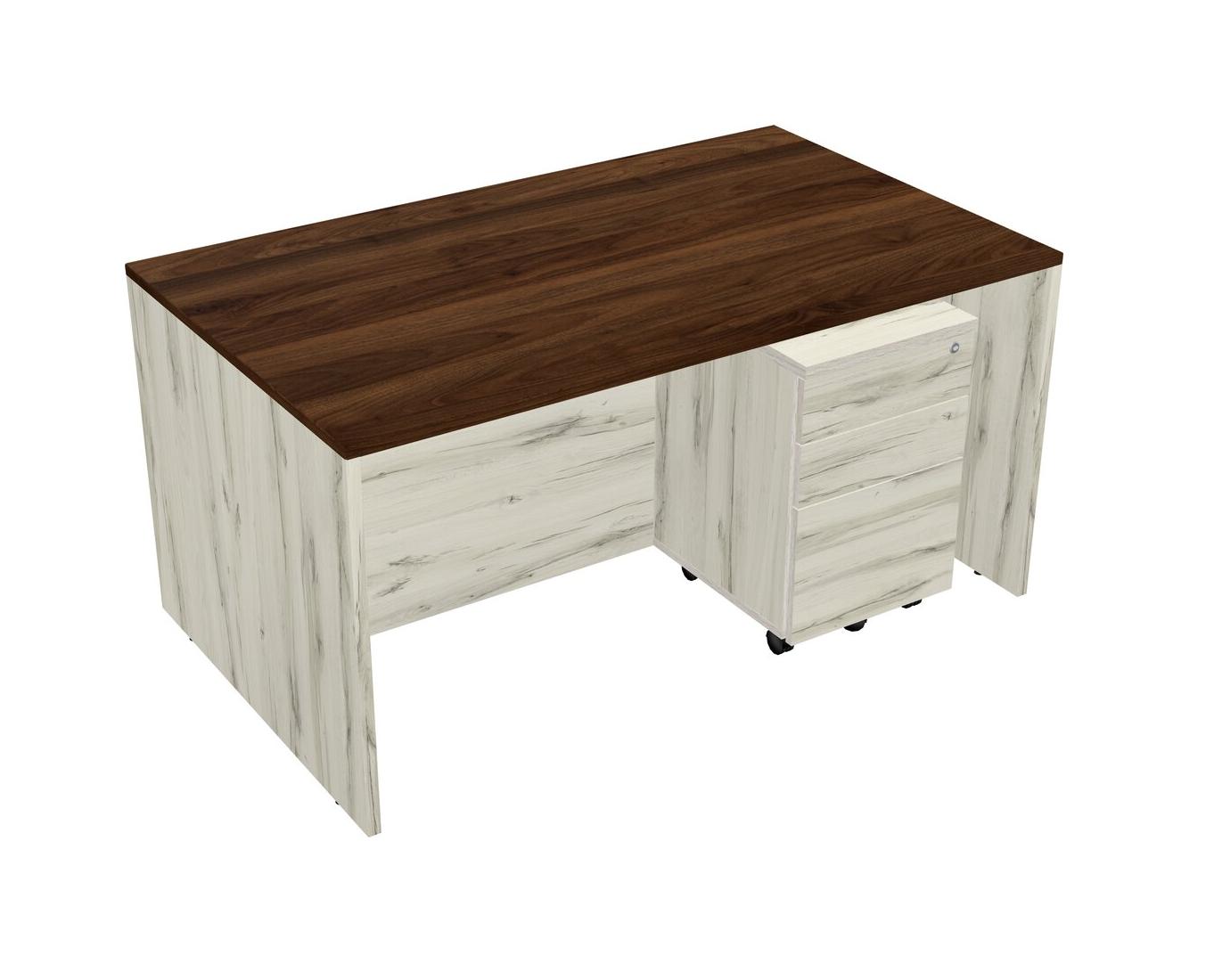 Columbia Walnut Rectangular Office Desk Plus Heinne Holz Wooden Mobile Drawers