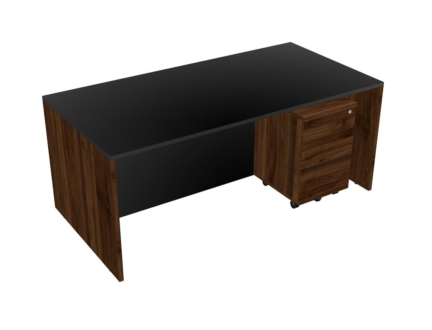 Black Rectangular Office Desk Plus Columbia Walnut Wooden Mobile Drawers