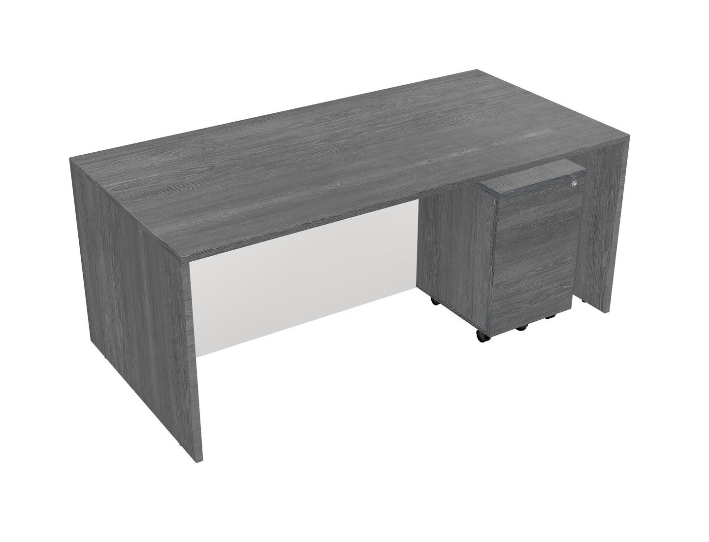 Grey Rectangular Office Desk Plus Grey Wooden Mobile Drawers