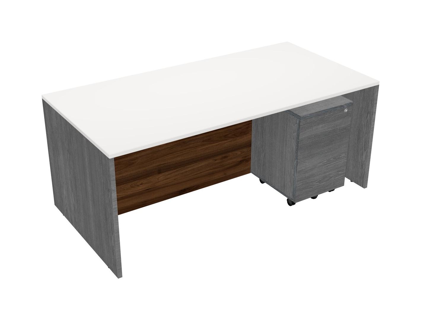White Rectangular Office Desk Plus Grey Wooden Mobile Drawers