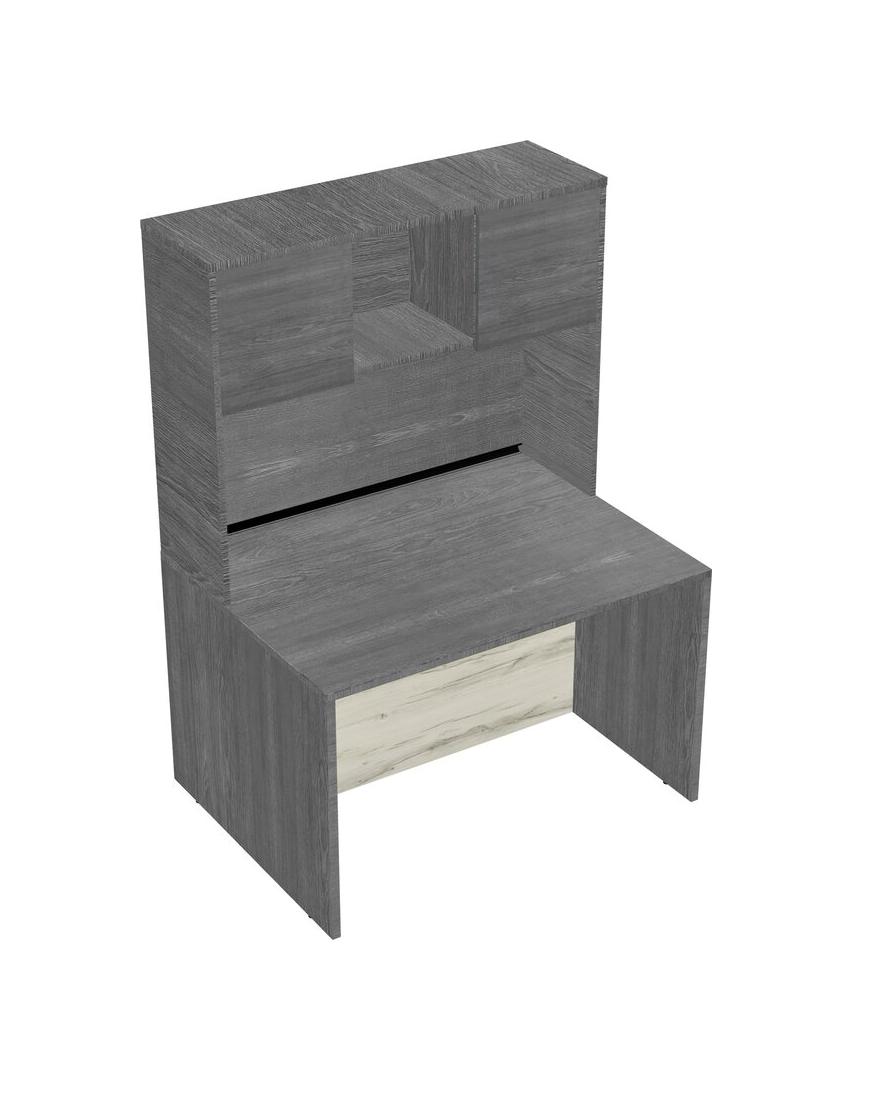 Grey Rectangular Office Desk And Grey Hutch