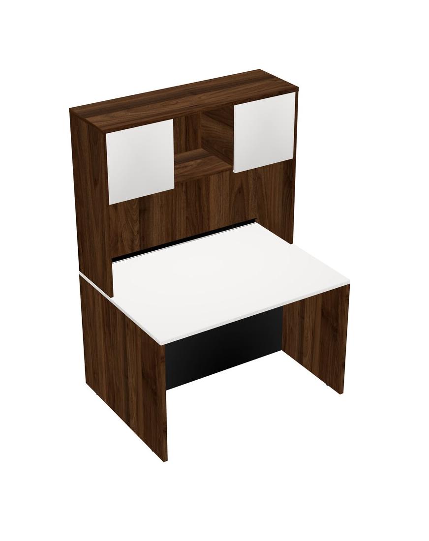 White Rectangular Office Desk And Columbia Walnut Hutch