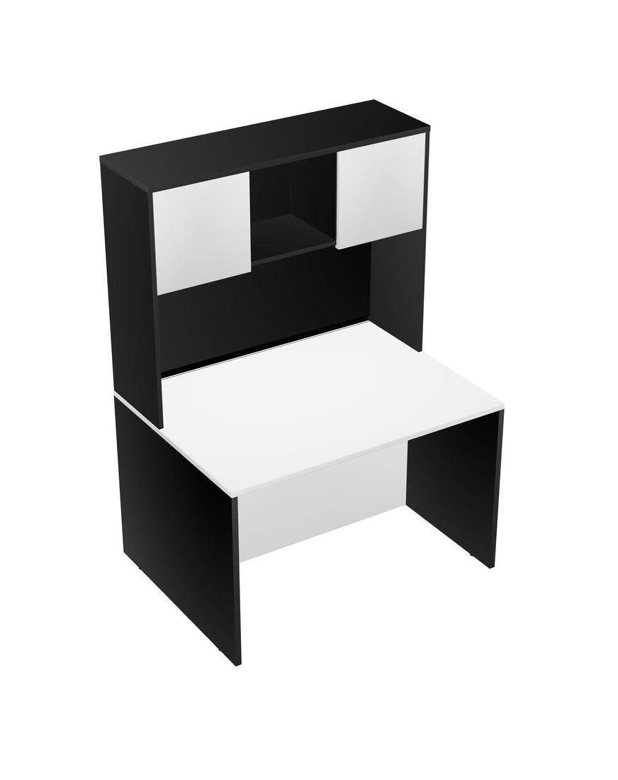 White Rectangular Office Desk And Black Hutch