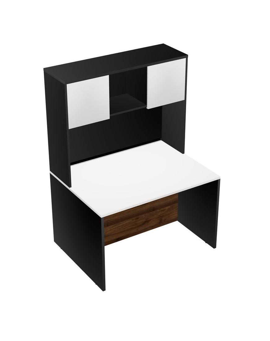 White Rectangular Office Desk And Black Hutch