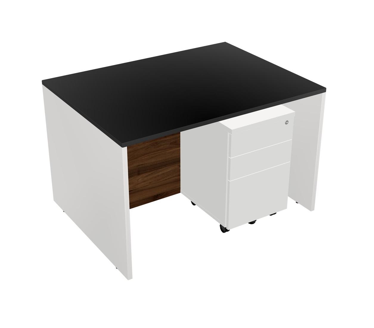 Black Rectangular Office Desk Plus White Wooden Mobile Drawers