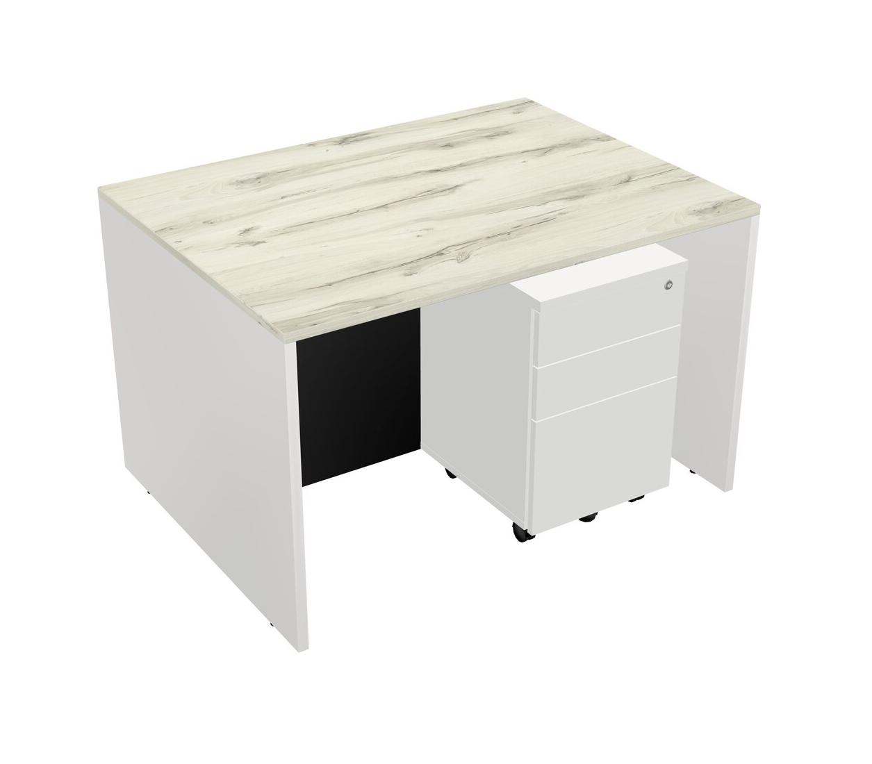 Heinne Holz Rectangular Office Desk Plus White Wooden Mobile Drawers