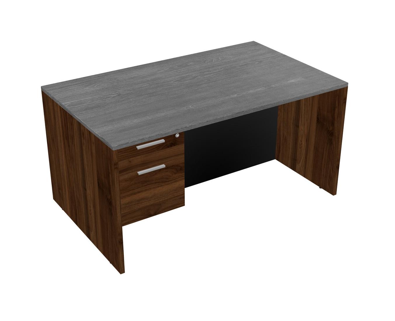 Grey Rectangular Office Desk Plus Columbia Walnut Hanging Drawers