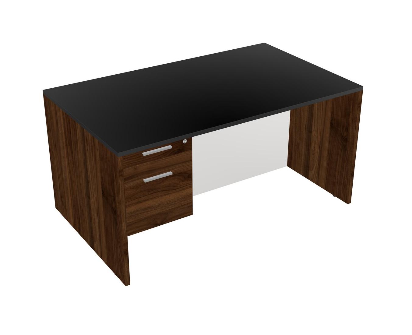 Black Rectangular Office Desk Plus Columbia Walnut Hanging Drawers