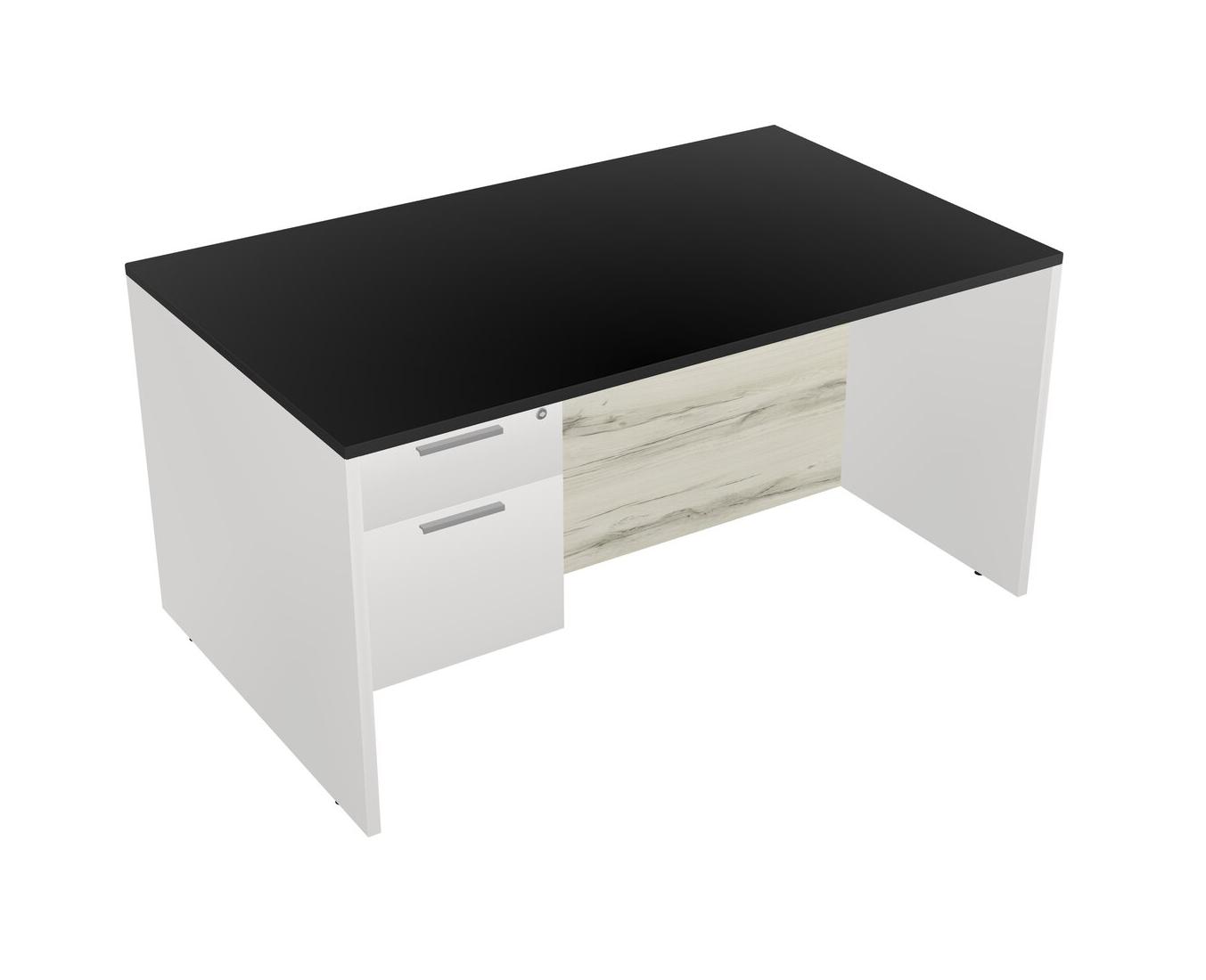 Black Rectangular Office Desk Plus White Hanging Drawers