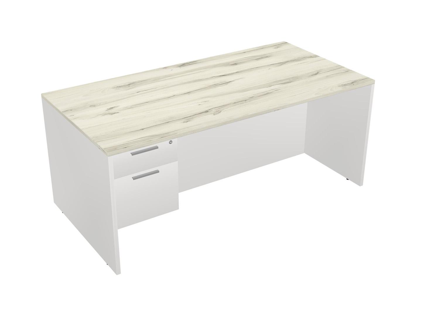 Heinne Holz Rectangular Office Desk Plus White Hanging Drawers