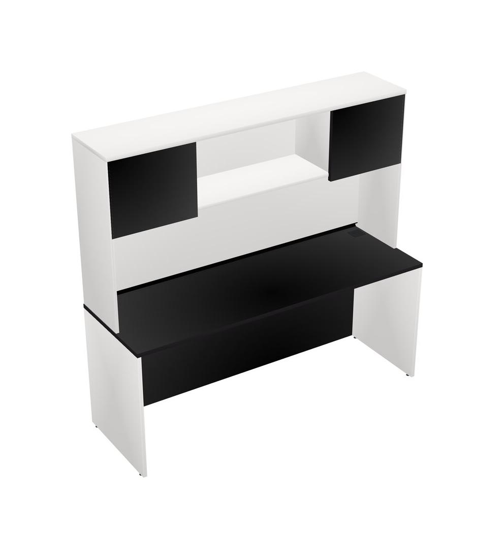 Black Rectangular Office Desk And White Hutch