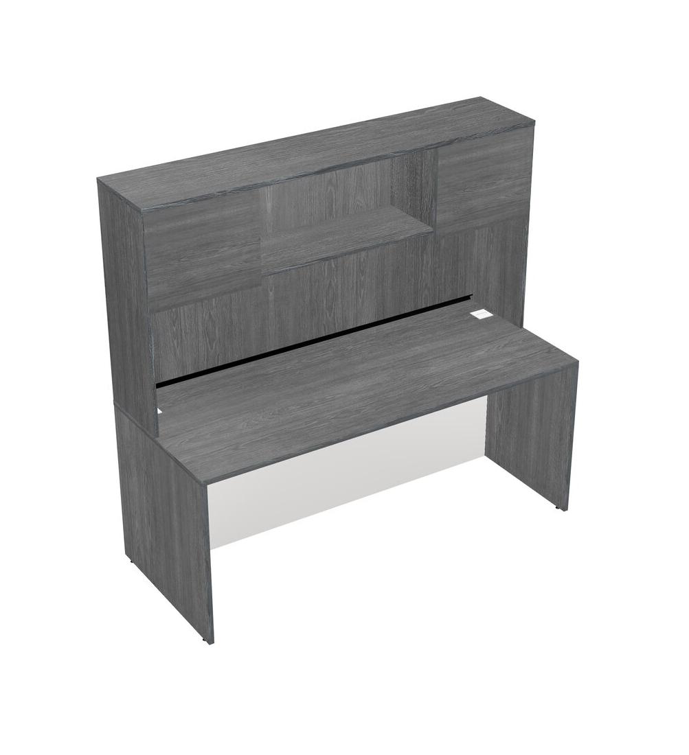 Grey Rectangular Office Desk And Grey Hutch