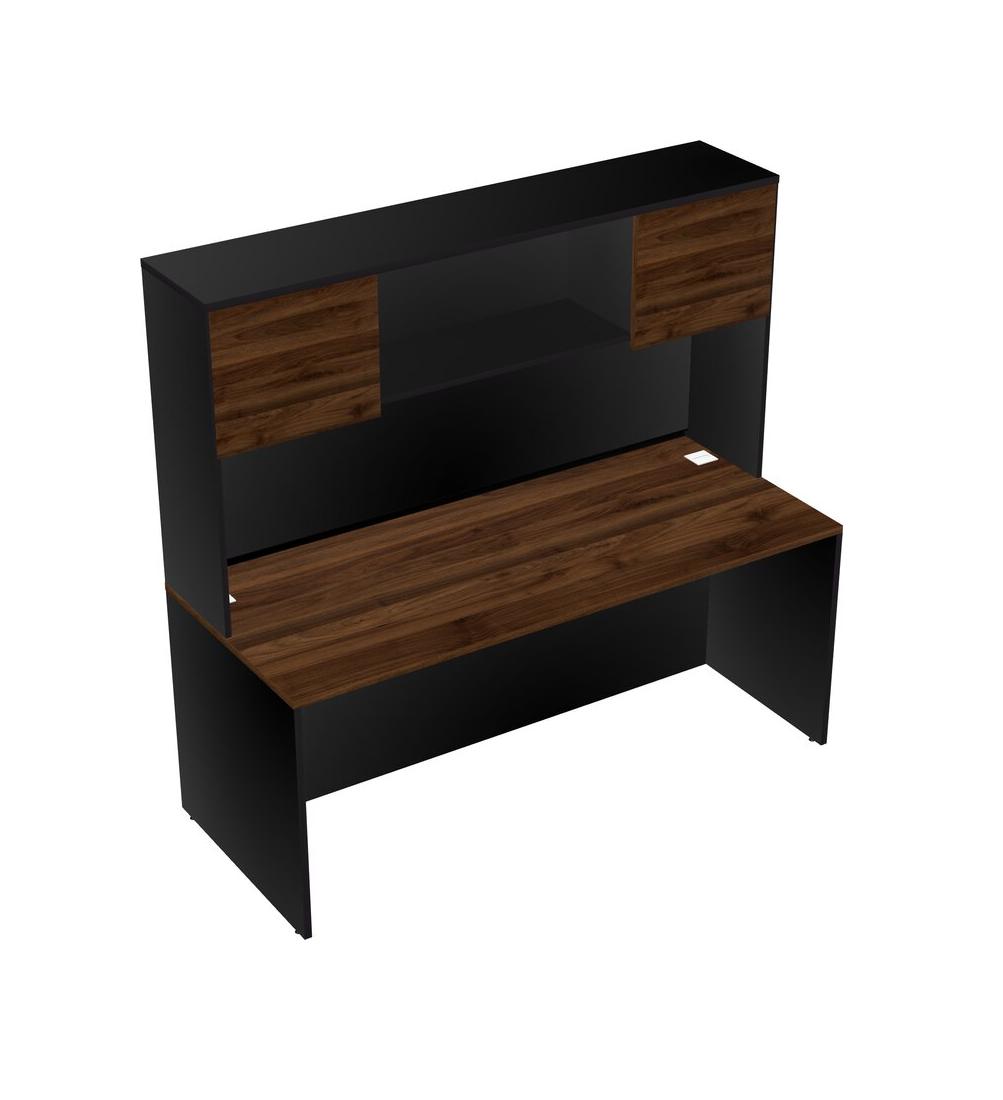 Columbia Walnut Rectangular Office Desk And Black Hutch