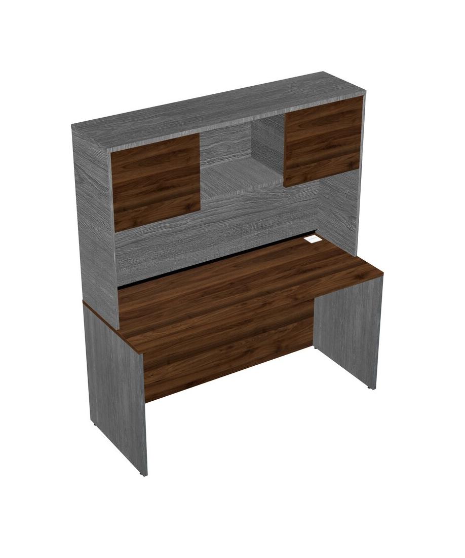 Columbia Walnut Rectangular Office Desk And Grey Hutch
