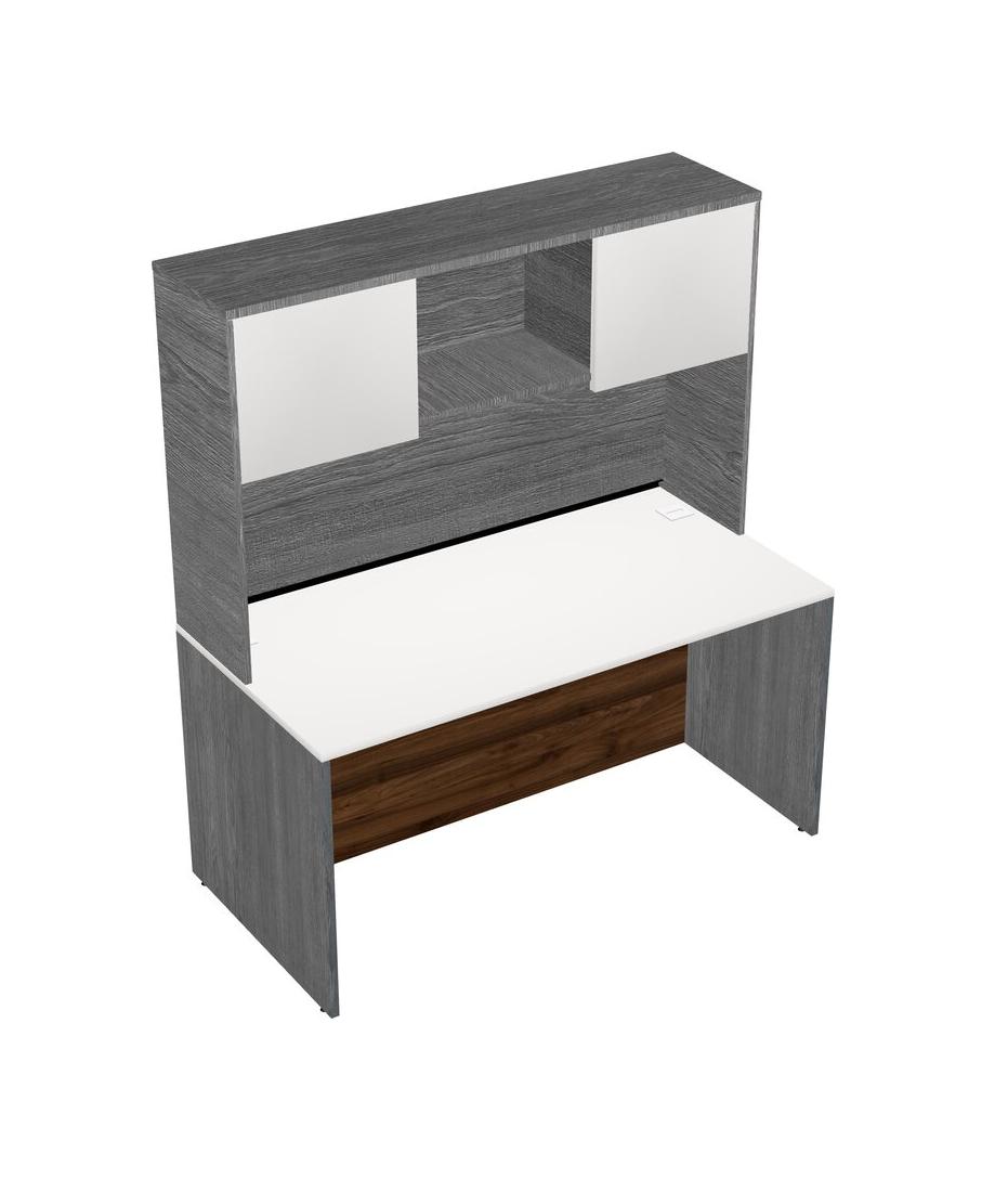 White Rectangular Office Desk And Grey Hutch