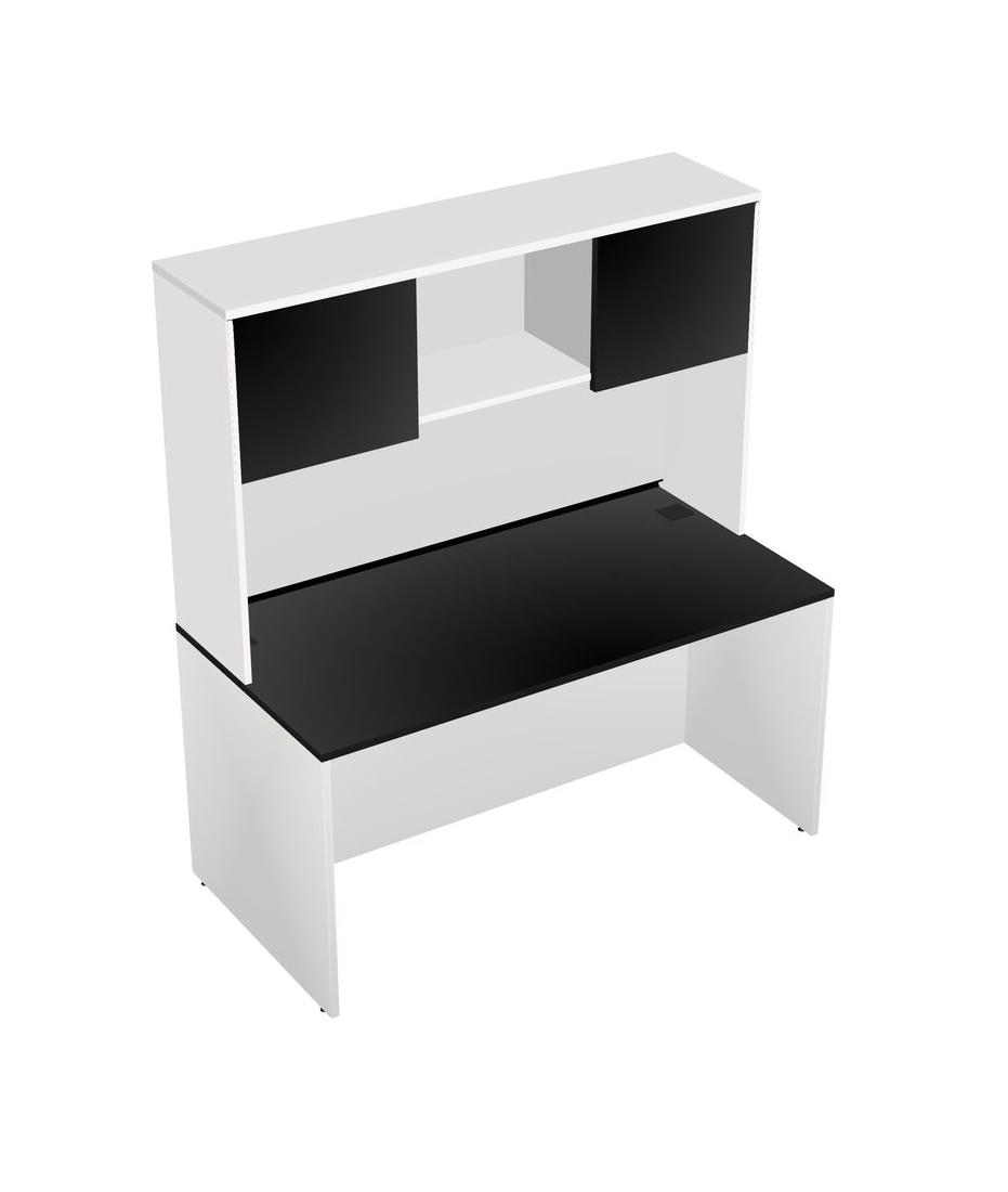 Black Rectangular Office Desk And White Hutch