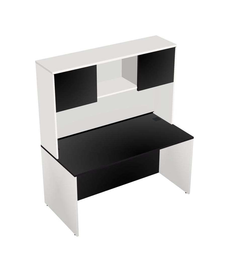 Black Rectangular Office Desk And White Hutch