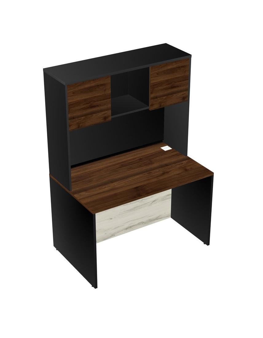 Columbia Walnut Rectangular Office Desk And Black Hutch