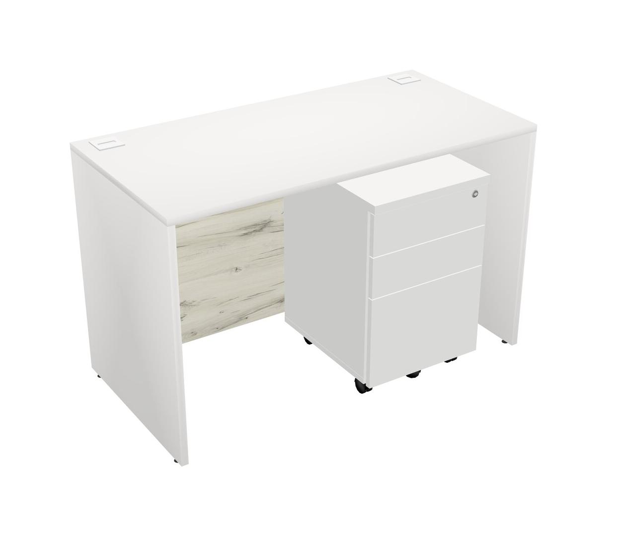 White Rectangular Office Desk Plus White Wooden Mobile Drawers