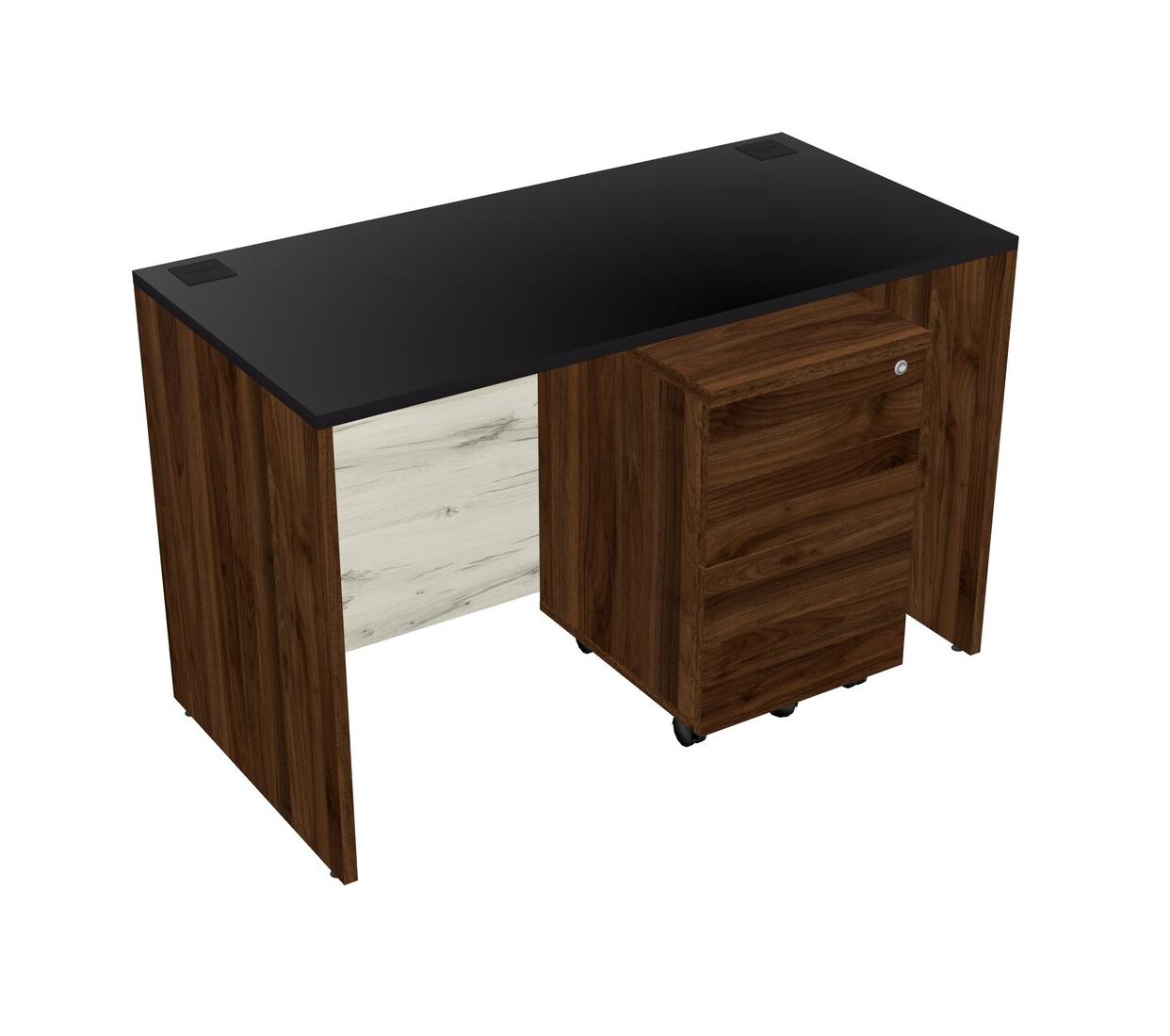 Black Rectangular Office Desk Plus Columbia Walnut Wooden Mobile Drawers
