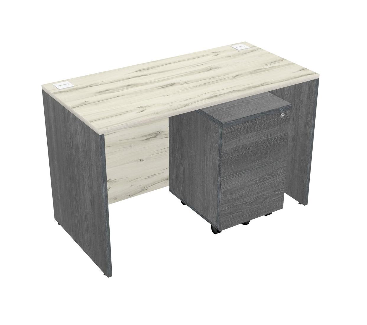 Heinne Holz Rectangular Office Desk Plus Grey Wooden Mobile Drawers