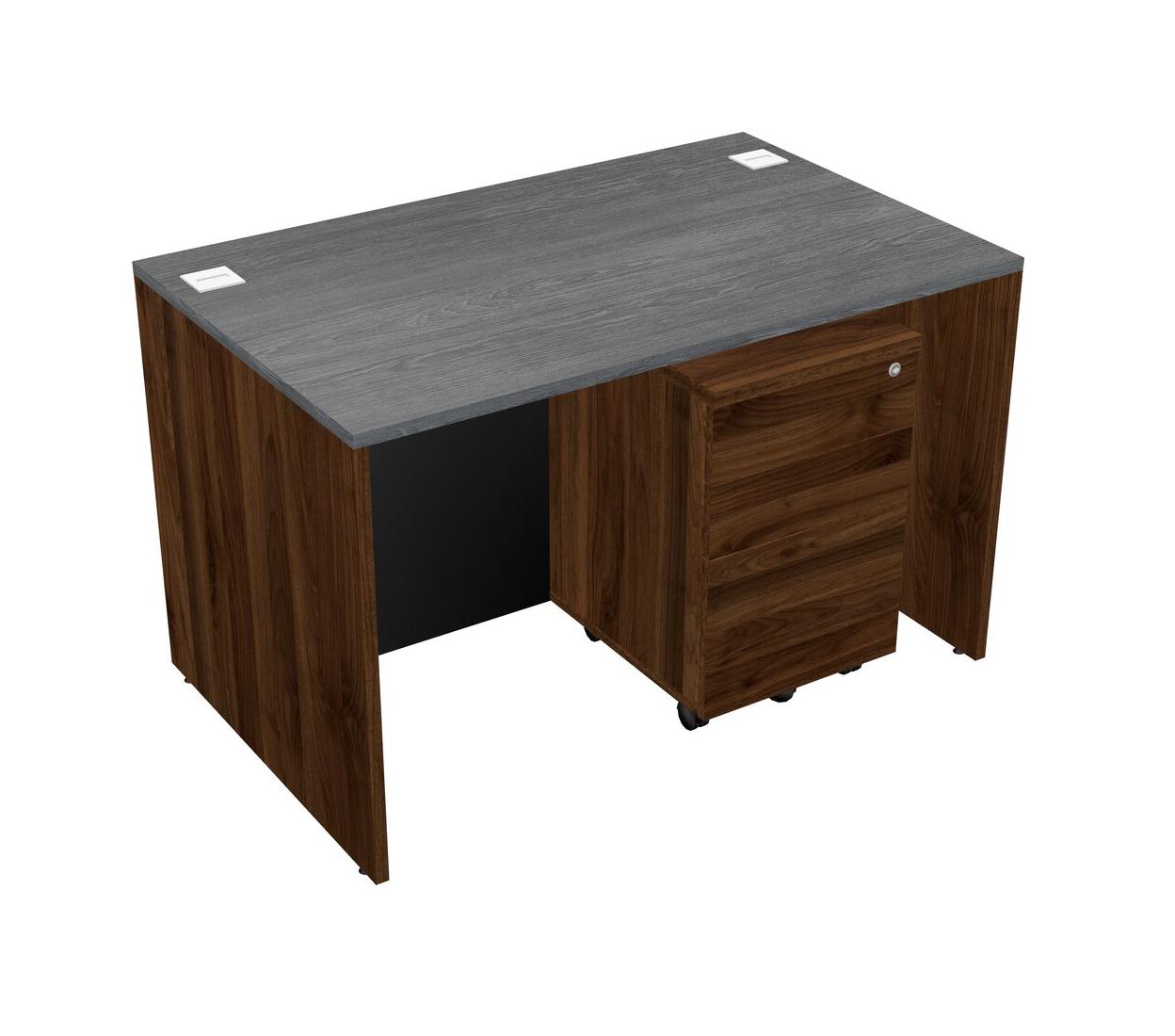 Grey Rectangular Office Desk Plus Columbia Walnut Wooden Mobile Drawers