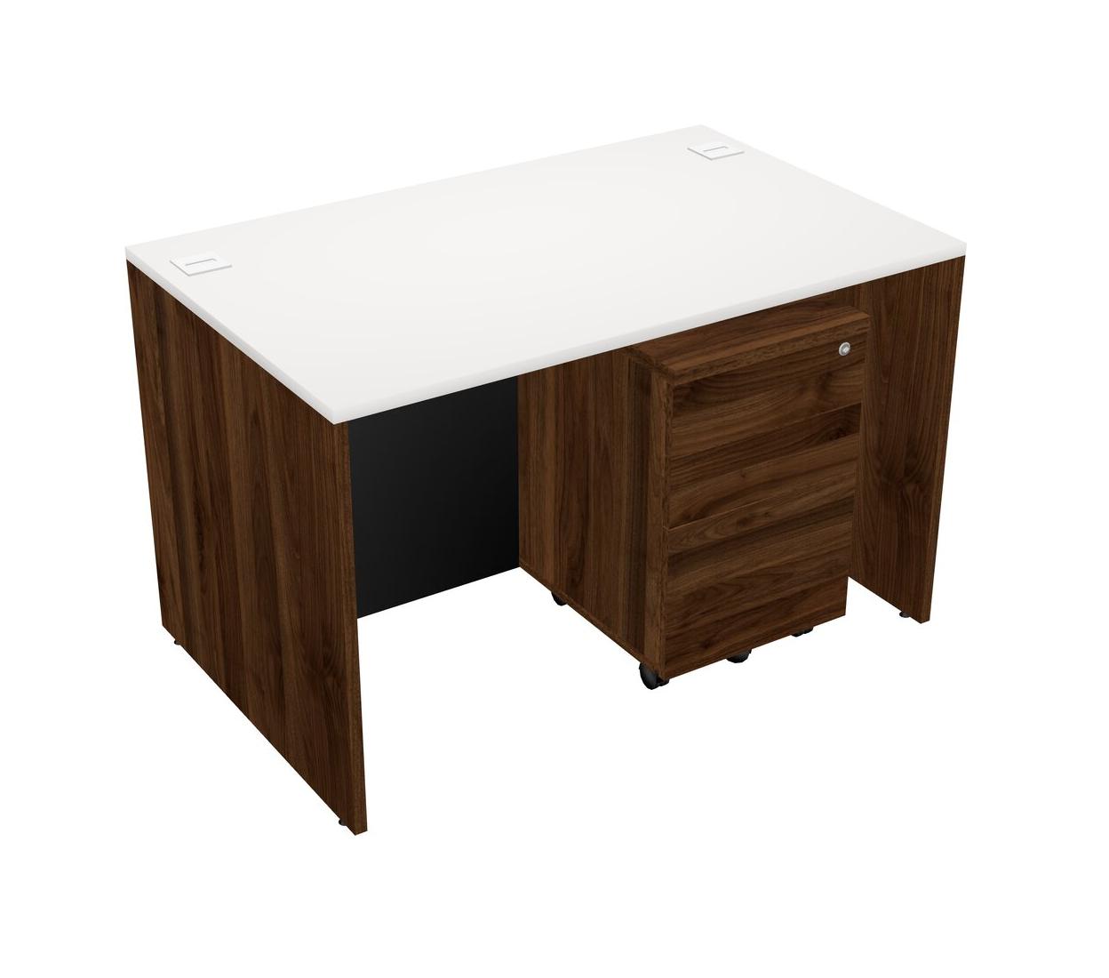 White Rectangular Office Desk Plus Columbia Walnut Wooden Mobile Drawers