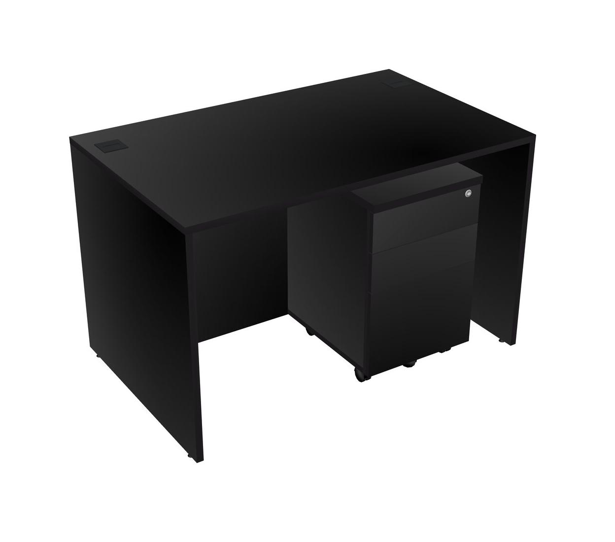 Black Rectangular Office Desk Plus Black Wooden Mobile Drawers