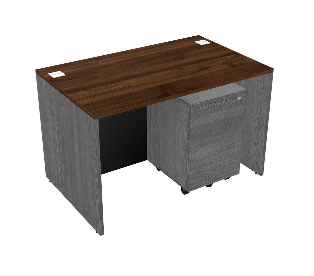 Columbia Walnut Rectangular Office Desk Plus Grey Wooden Mobile Drawers