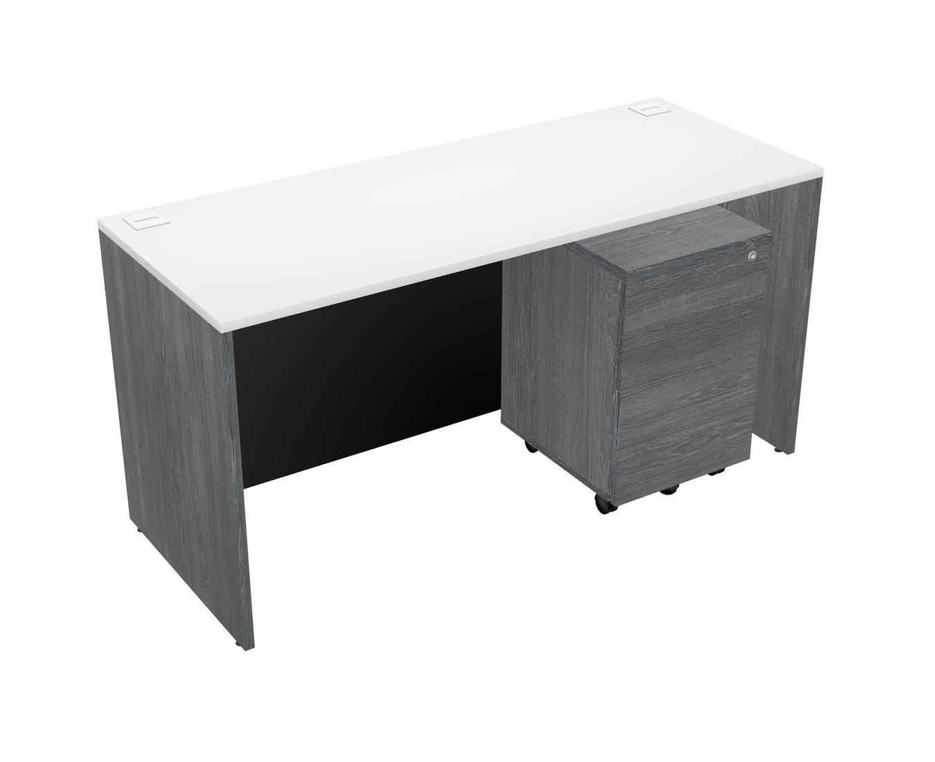 White Rectangular Office Desk Plus Grey Wooden Mobile Drawers