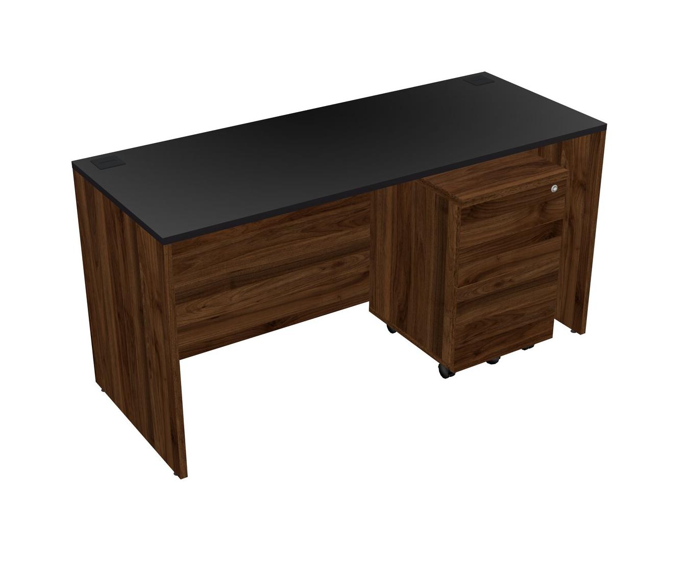 Black Rectangular Office Desk Plus Columbia Walnut Wooden Mobile Drawers