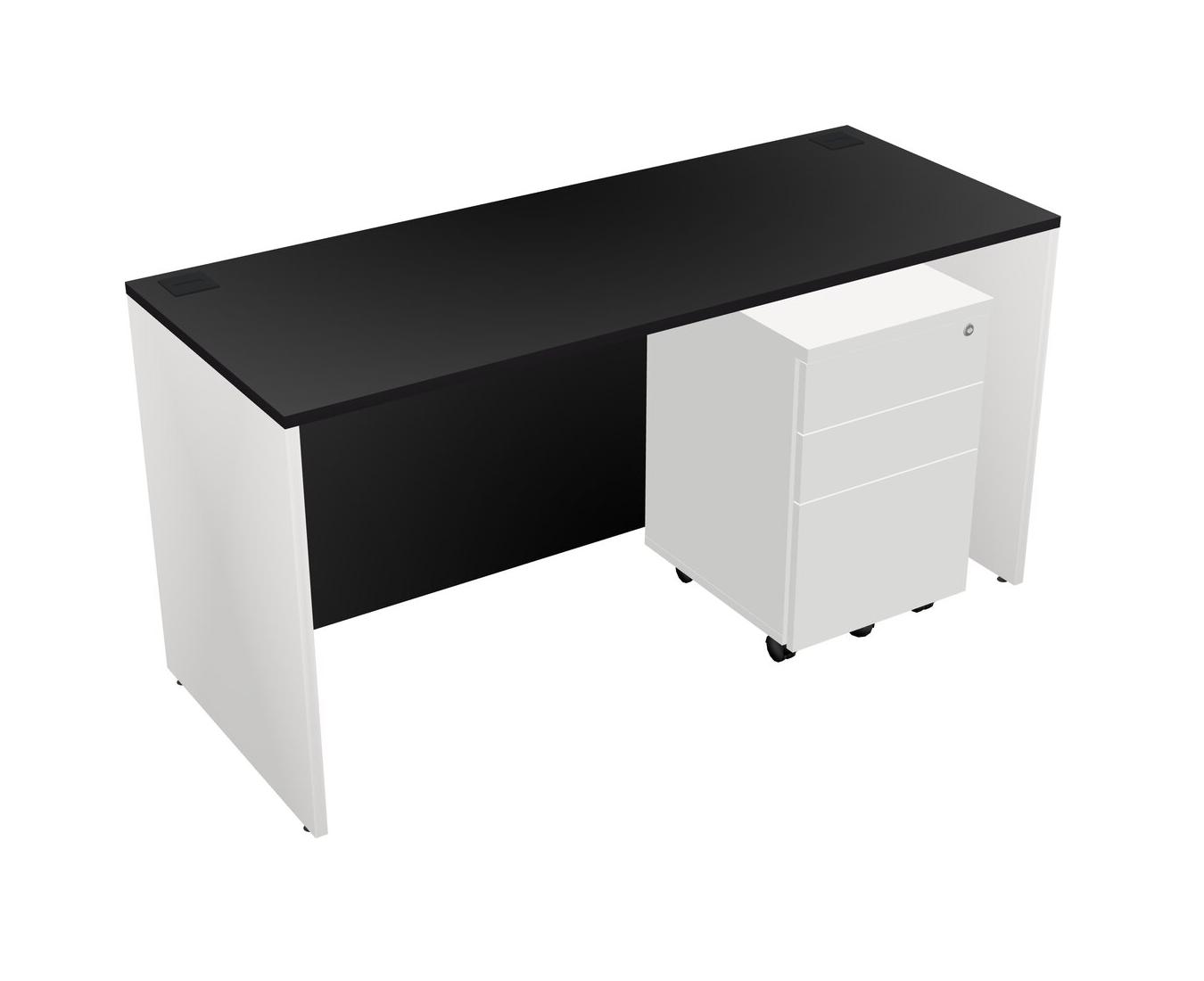 Black Rectangular Office Desk Plus White Wooden Mobile Drawers
