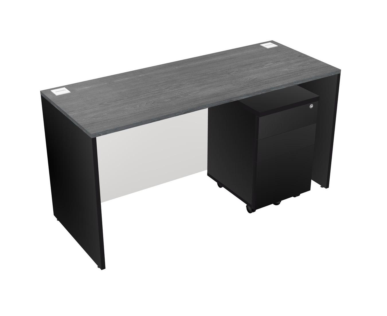 Grey Rectangular Office Desk Plus Black Wooden Mobile Drawers