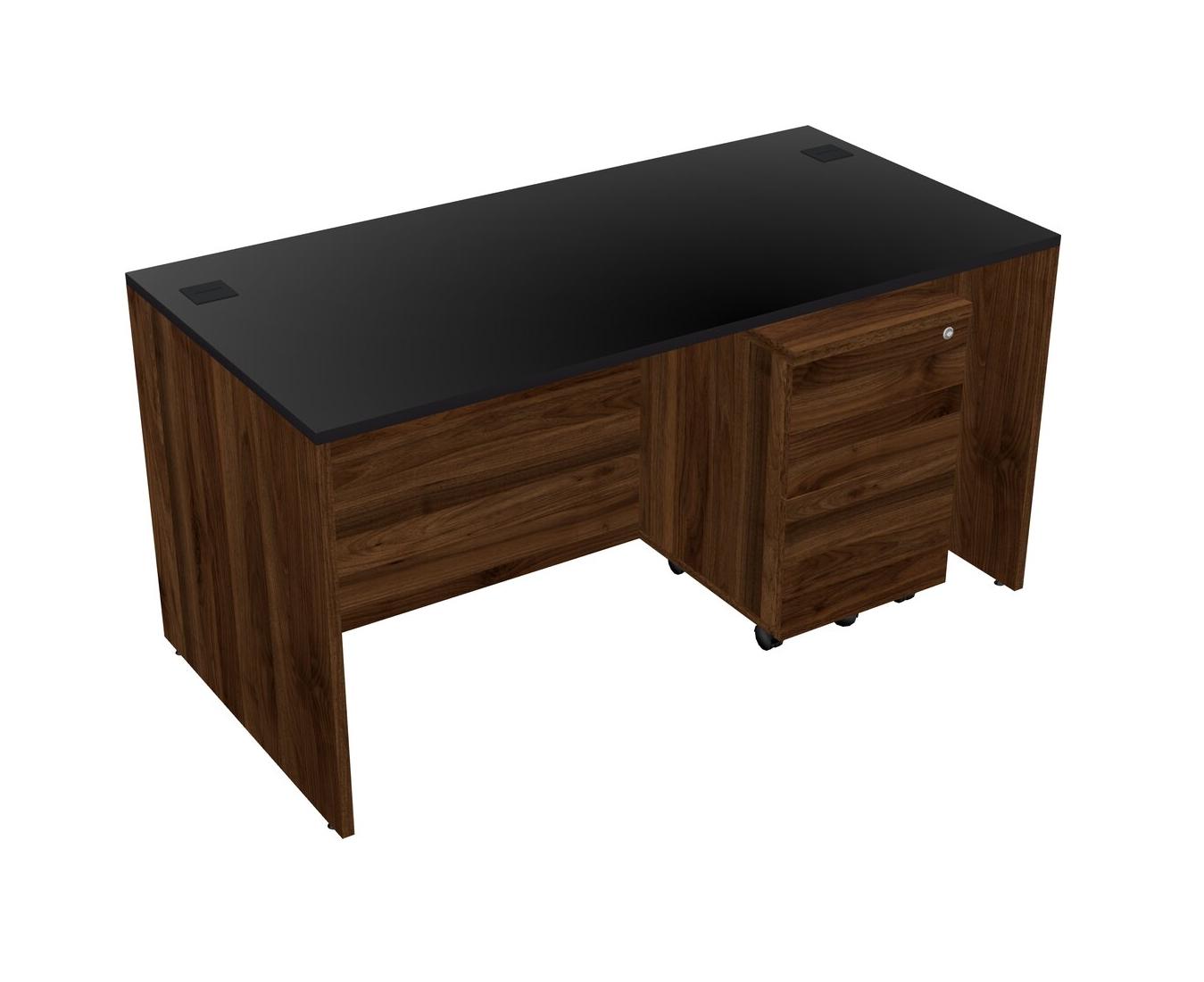 Black Rectangular Office Desk Plus Columbia Walnut Wooden Mobile Drawers
